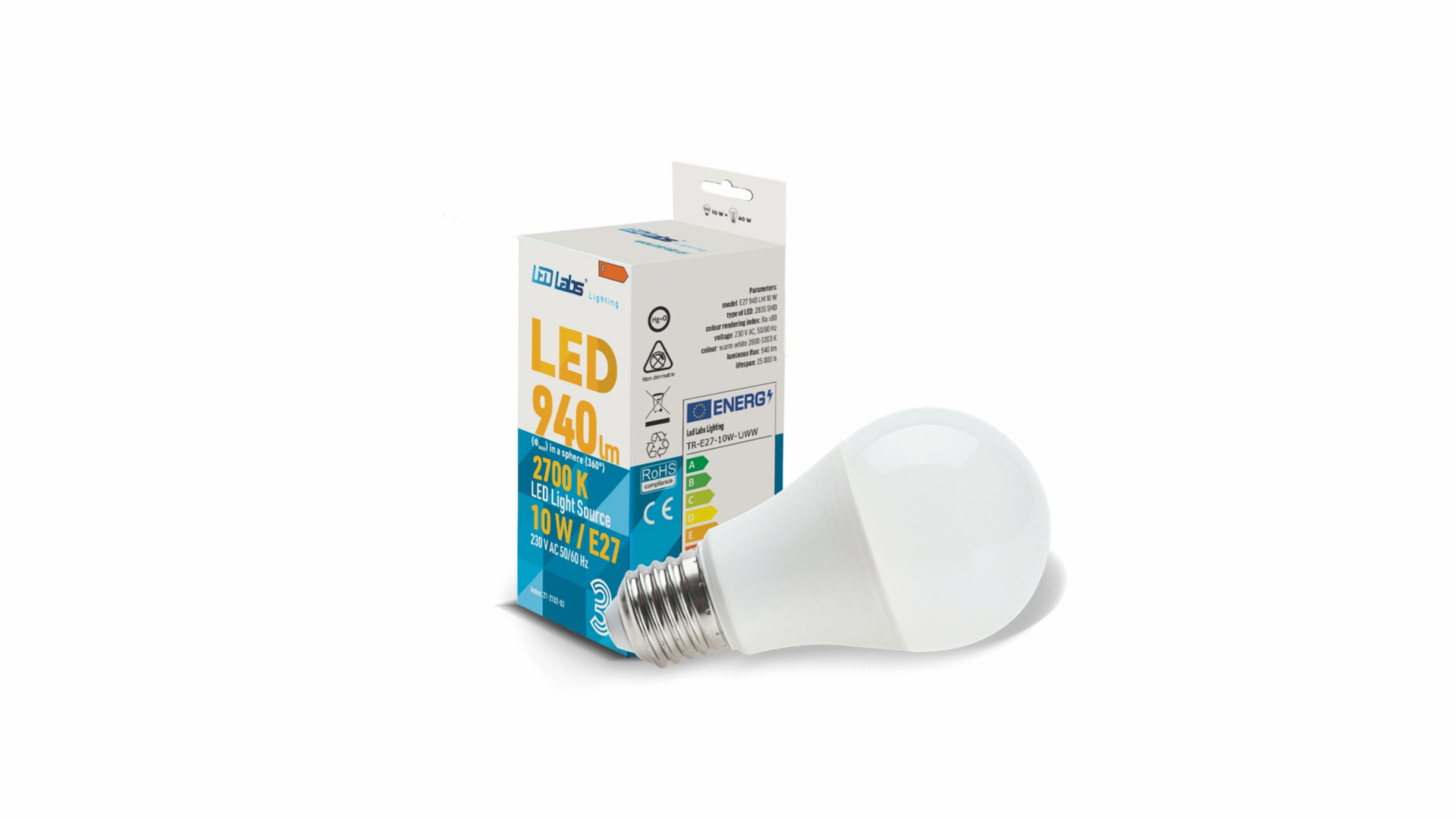 Żarówka LED E27 o mocy 10W i strumieniu świetlnym 940 lumenów w barwie białej ultra ciepłej. Zamiennik tradycyjnej żarówki o mocy 60W. Gwint E27 to jeden z najczęściej stosowanych gwintów, ze względu na swoją prostotę demontażu/montażu żarówek.